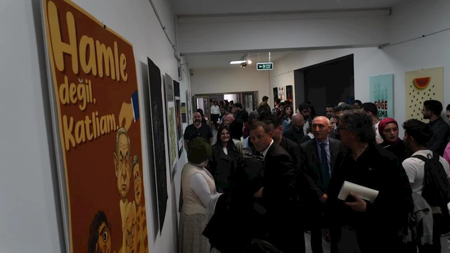Atatürk Üniversitesi Güzel Sanatlar Fakültesi tüm bölümlerin katılımıyla hazırlanan karma sergide, Gazze'de yaşanan insanlık dramına sanatla tanıklık edildi.