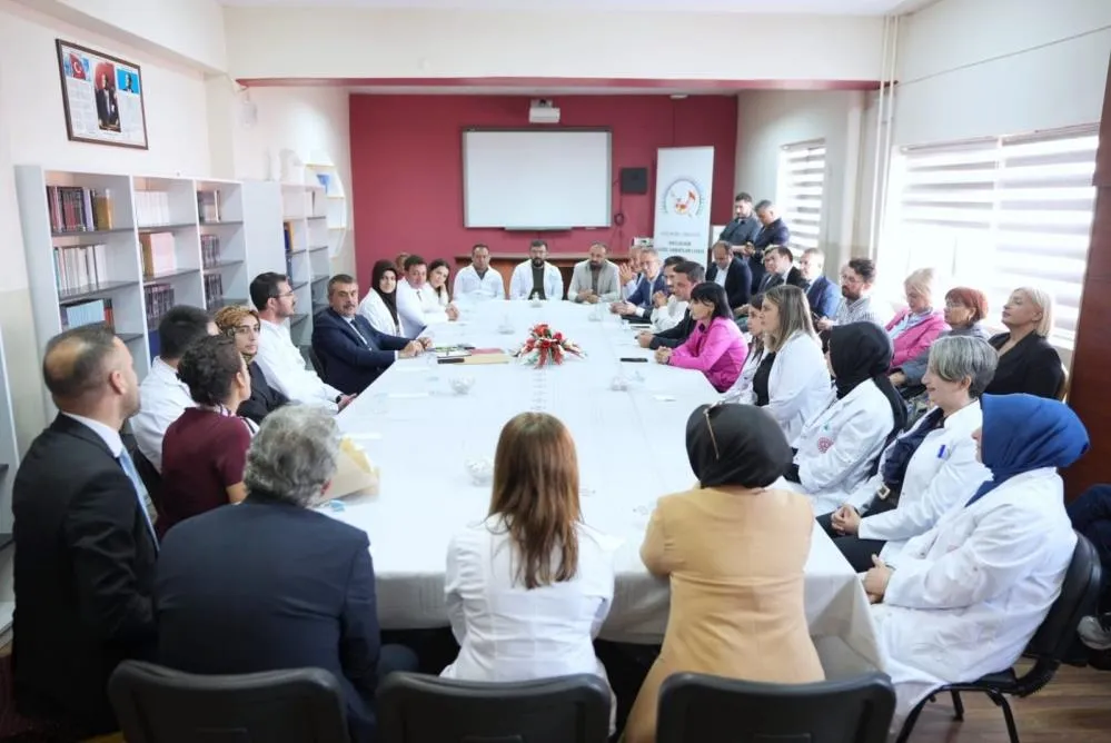Öğretmeneler, Bakanlığın bu yıl hayata geçirdiği ilkokul 1. sınıf şubeleri ile sınıf öğretmenleri ve ortaokul 5. sınıf şubelerinin e-Okul sistemi üzerinden otomatik olarak belirlendiği uygulamadan dolayı teşekkür etti. İstişare kültürüne önem verdiklerini belirten Bakan Tekin, öğretmenlerin sahadaki uygulamalara yönelik görüş ve önerilerini dikkate alarak yol haritası belirlediklerini kaydetti. Bakan Tekin, tüm imkânlarıyla öğretmenlerin yanında yer almaya devam etti deneklerini kaydetti. Buluşmada Bakan Tekin, daha sonra Yavuz Keleş, Sevcan Eser ve Yavuz Selim Yıldırım isimli öğretmenlere doğum günü sürprizi yaptı, pasta kesti. Bakan Yusuf Tekin, daha sonra okulun sanat sokağını ve atölyeleri gezerek okulda yürütülen çalışmalar hakkında bilgi aldı.