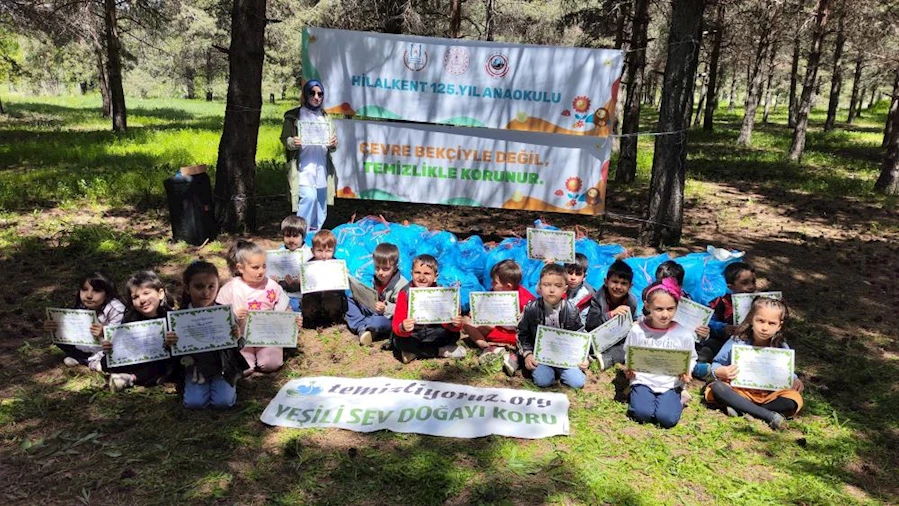 Erzurum'un Yakutiye ilçesi Hilalkent 125. Yıl Anaokulu öğrencileri, herkese örnek olacak bir çevre faaliyeti yaptı. Anaokulu çocukları 8 yıldır gönüllü olarak doğa temizliği yapan A.Kerim Erzeneoğlu ve öğretmenlerinin denetiminde onlarca poşet çöp topladı. Atatürk Üniversitesi kampüsü içinde bulunan ormanlık alanda, önce ellerine eldivenleri takan minikler daha sonra adeta bir oyun oynar gibi çevredeki çöpleri topladılar. Çöp toplama konusunda yarışa giren minikler kısa sürede onlarca poşete çöpleri doldurdular.