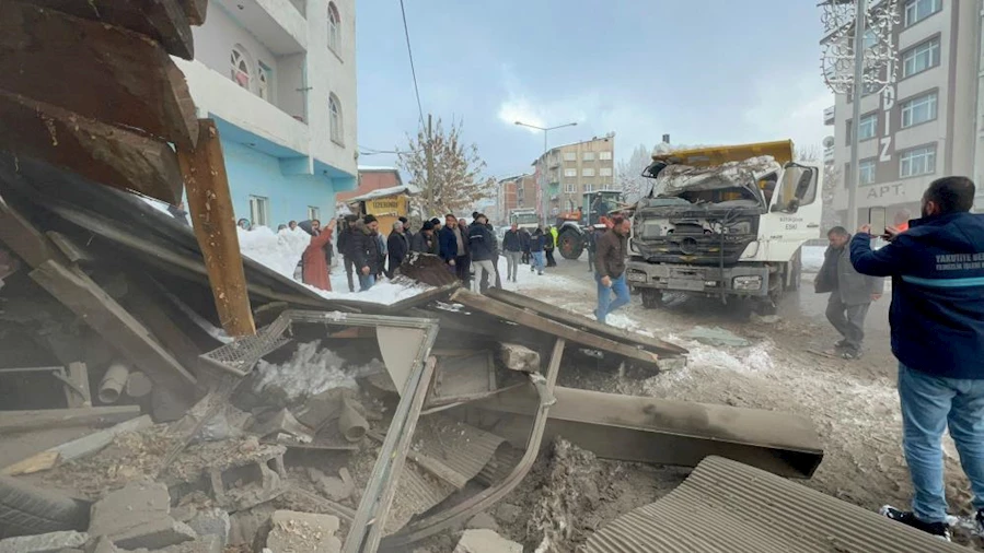 Erzurum’un Yakutiye ilçesinde 25 LE 296 plakalı kamyon sürücüsü, Ahmet Yesevi Caddesi’nde seyir halinde olduğu esnada, yol kenarında park halinde iken bir anda hareket eden 25 ACD 151 plakalı hafif ticari araca çarpmamak için frene bastı. Yolun buzlu olması nedeniyle kamyon sürücüsü direksiyon hakimiyetini kaybetti ve önündeki araca çarpmamak için yol kenarındaki evin kömürlük olarak kullanılan bölümüne çarparak durdu.