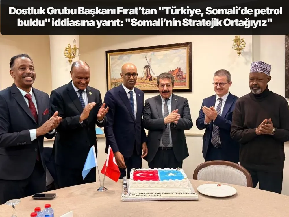 TBMM Türkiye-Somali Parlamentolar Arası Dostluk Grubu Başkanı Abdurrahim Fırat, Somalili bir iş insanının "Türkiye’nin Somali’de petrol bulduğu ve bu yüzden bölgeye 3 F-16 ve 3 savaş helikopteri gönderdiği" yönündeki değerlendirmesine, iki ülkenin stratejik ortak olduğu vurgusuyla yanıt verdi.