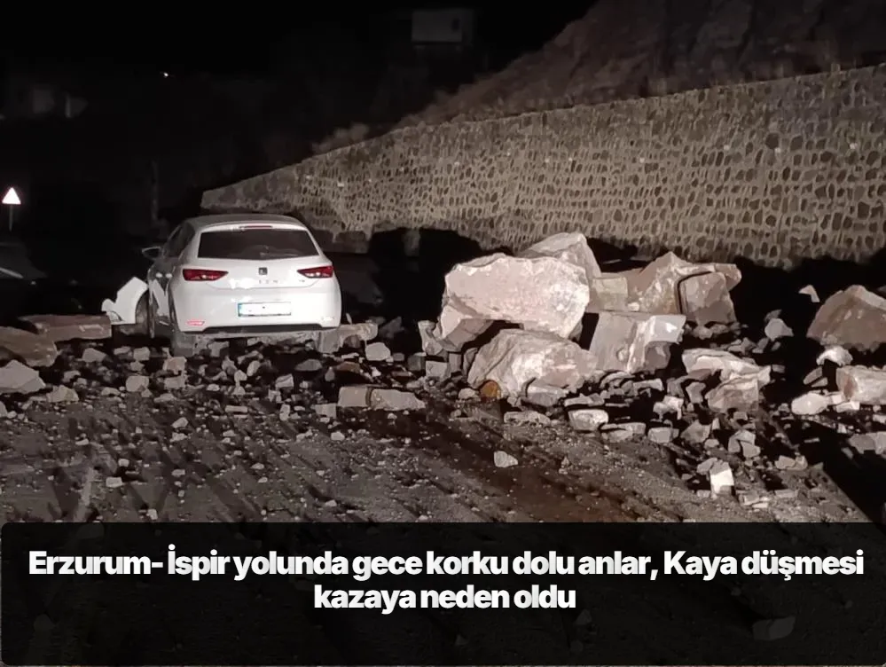 Dün gece yarısı meydana gelen olayda, 34 FM 6609 plakalı otomobil, İspir’den Erzurum istikametine seyir halindeyken İspir Maden Köprü mevkiinde meydana gelen ani heyelan sonucu yola düşen büyük kayalara çarptı. Kazada araç kullanılamaz hale gelirken, sürücünün hafif sıyrıklarla kazadan kurtulması olası bir faciayı önledi.