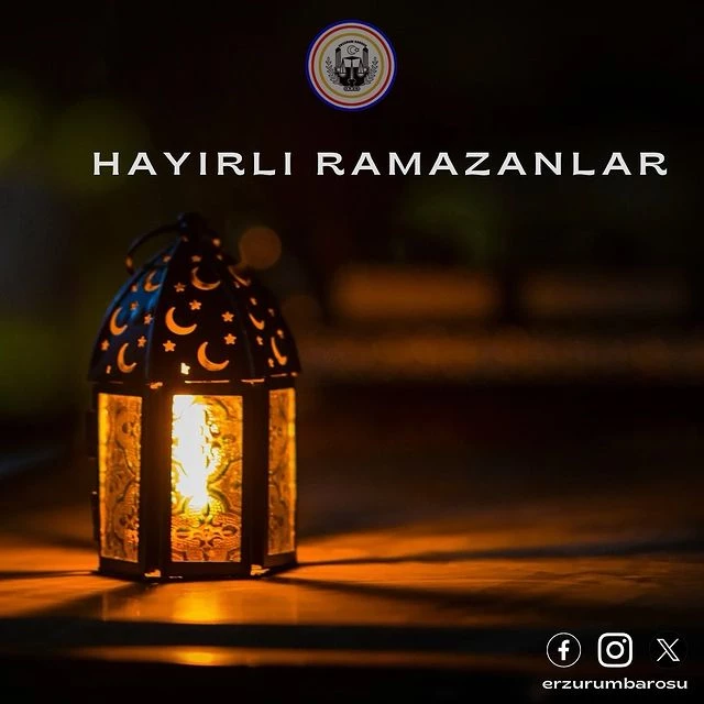 Erzurum Barosu, Ramazan ayının başlamasıyla ilgili bir açıklama yaparak, bu kutsal ayın ülke ve insanlık için barış, huzur, refah ve bereket getirmesini temenni etti. Baro yönetimi, Ramazan ayında artan birlik, beraberlik, dayanışma ve sağduyunun önemini vurgulayarak, toplumun bu değerlere sahip çıkmasının önemine dikkat çekti.