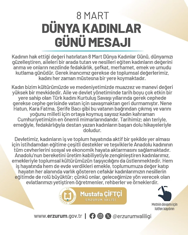 #ErzurumValisiMustafaÇiftçi #DünyaKadınlarGünü #KadınlarGünü #KadınHakları #ToplumsalCinsiyetEşitliği
