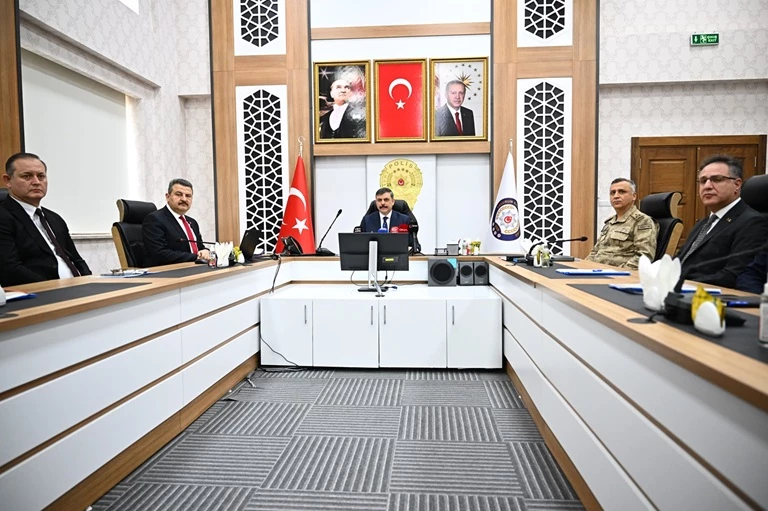 Toplantıya İl Jandarma Komutanı Tuğgeneral Metin Düz, İl Emniyet Müdürü Kadir Yırtar ve emniyet mensupları da katıldı.