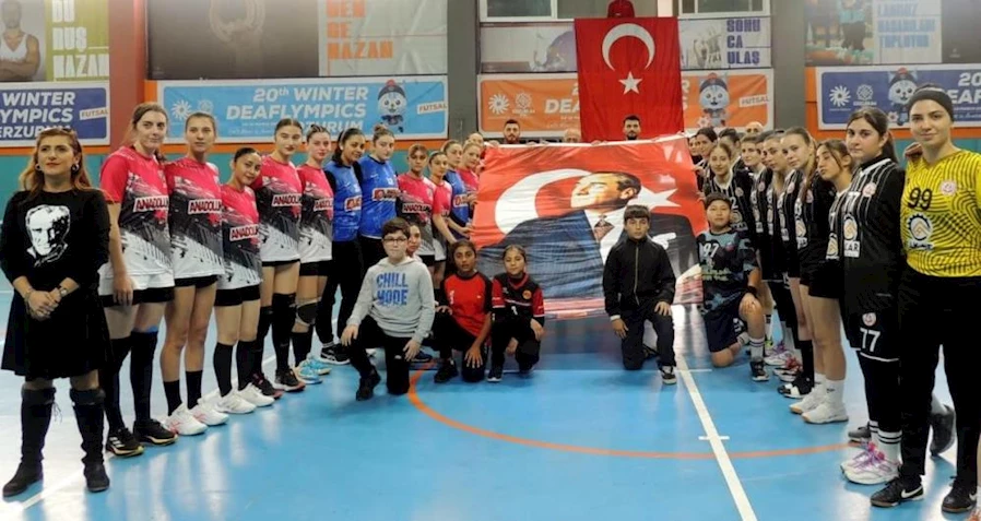 10 Kasım Atatürk’ü Anma Günü nedeniyle sahaya ellerindeki dev Atatürk posteri ile çıkan takımlar, bir dakikalık saygı duruşunun ardından hep bir ağızdan İstiklal Marşı’nı okudular.