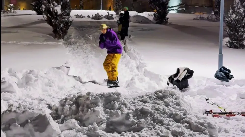 Erzurum'da etkili olan yoğun kar yağışı, gençleri sokağa çıkardı. Bir grup genç, Erzurum Kalesi önünde kendi imkanlarıyla oluşturdukları küçük pistte snowboard yaparak renkli görüntülere imza attı.