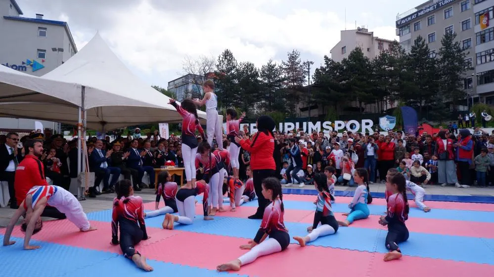 Havuzbaşı Kent Meydanı'nda düzenlenen törende, gençler ve çocuklar tarafından sergilenen halk oyunları, askeri bando konseri, mehter takımı konseri, eskrim ve cimnastik gösterileri büyük beğeni topladı.