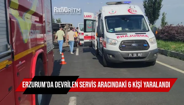 Erzurum'da kontrolden çıkarak devrilen servis aracındaki 6 kişi yaralandı.