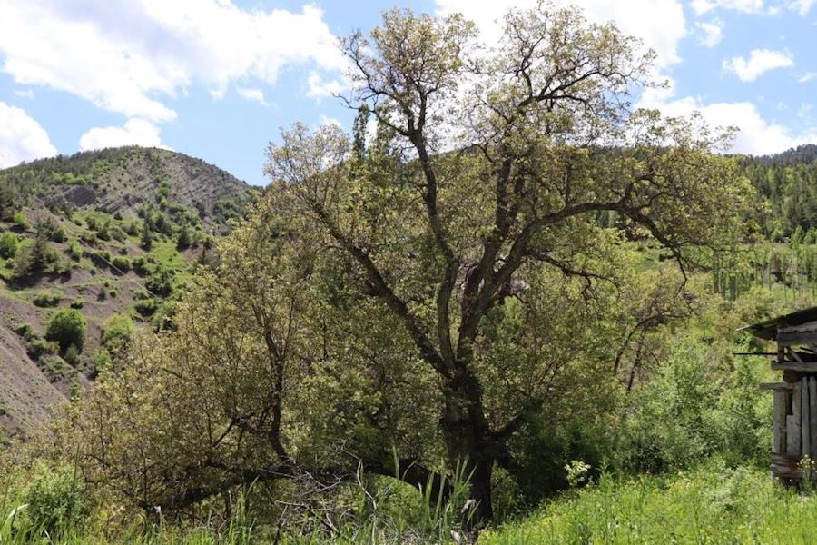 Erzurum'un Oltu ilçesi Arıtaş Mahallesi'nde en az 300 yıllık olduğu tahmin edilen tarihi ceviz ağacı, hem meyve veriyor hem de geçmişe tanıklık ediyor.