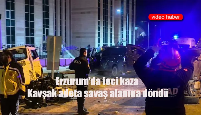 Erzurum'da feci kaza: Kavşak adeta savaş alanına döndü