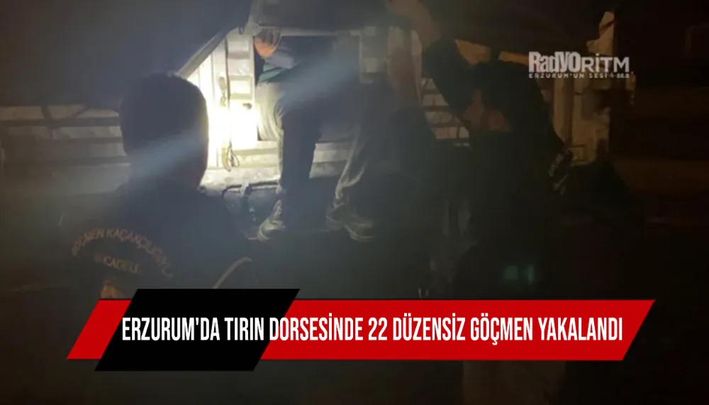 Erzurum'da polis ekipleri tarafından düzenlenen operasyonda bir tırın dorsesinde 22 düzensiz göçmen yakalandı.