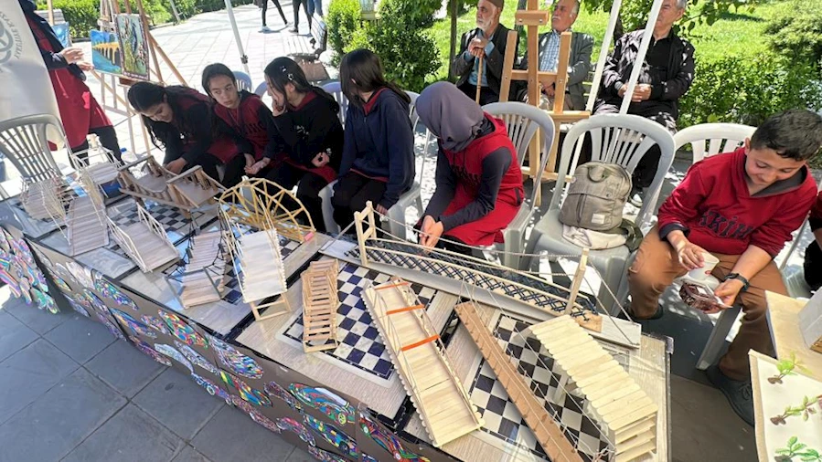 Yakutiye Kent Meydanı'nda bir araya gelen öğrenciler; yıl boyunca emek verdikleri resim, robotik kodlama, tablo gibi çalışmalarını sergilediler.