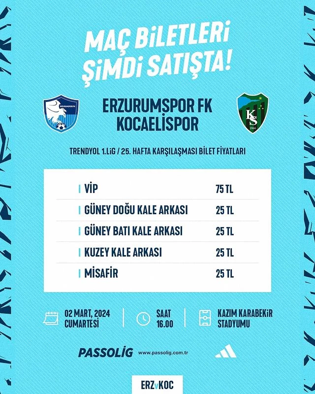 #Erzurumspor #Kocaelispor #Futbol #Karşılaşma #BiletSatışı #Taraftarlar #StadyumMaçı #Destek #HeyecanlıMücadele