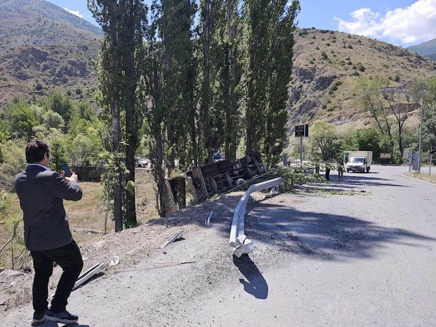 Freni boşalan kamyon uçuruma yuvarlandı: 1 ölü
