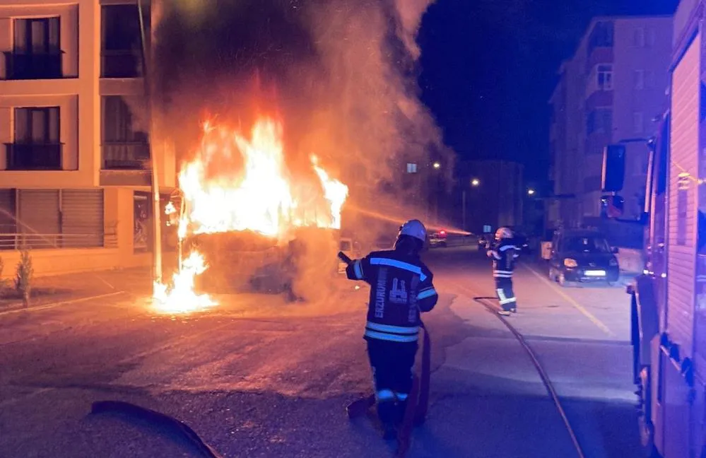 Erzurum’un Palandöken ilçesi Hüseyin Avni Ulaş Mahallesi 214. Sokak’ta park halindeki araç bir anda alev aldı. Vatandaşların ihbarı üzerine olay yerine itfaiye, polis ve sağlık ekipleri sevk edildi. Adeta alev topuna dönen araç yangını çevredeki vatandaşları da korkuttu. Erzurum Büyükşehir Belediyesi İtfaiye Daire Başkanlığı ekipleri tarafından yapılan açıklamada, "Yanan özel halk otobüsü merkez itfaiye ekiplerimiz tarafından söndürüldü" denildi.