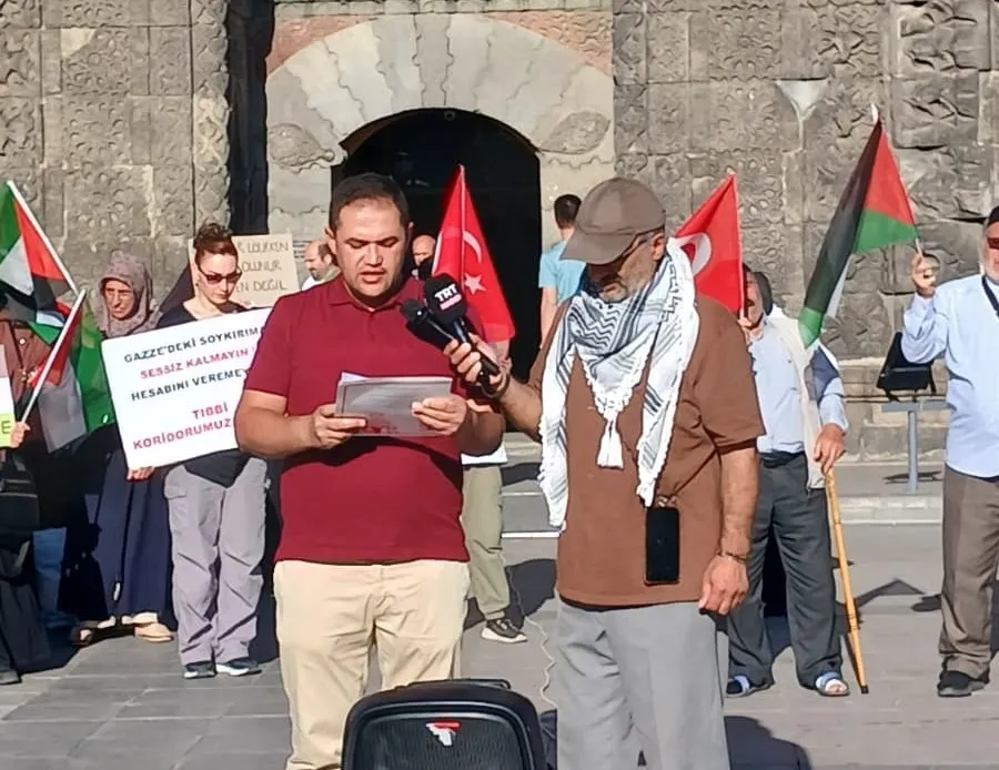 Aile hekimi Bünyamin Yeşilyurt, Gazzelilerin aylardır, İsrail'in saldırıları altında yaşam mücadelesi verdiğini ve saldırılarda binlerce masumun hayatını kaybettiğini hatırlatarak "Artık zaman Müslümanım diyen insan için eskisi gibi değil. Müslümanın rutini; dünyalık işlerini yerine getirirken ibadetlerini eda edip kenara çekilmek değil. Zaten Müslümanım diyen kimsenin hayatı bundan yaklaşık 2 yıl öncesi gibi olmamalı. Cennet ne güzel yer değil mi? Okuduğumuz, merak ettiğimiz, gitmek istediğimiz, çeşitlerle dolu masalarımızda yemek yerken, sıcak evimizde rahat yatağımızda yatarken talip olduğunuz cennet... Tüm imkansızlıkların içerisinde, zalimle göğüs göğüse çarpışarak şehit düşen şerefli Gazzeli kardeşlerimizin de, canlarını, mallarını ve evlatlarını bu yolda feda ederek talip olduğu yer... Evet, onlarla aynı cennete talibiz...Yetmiyormuş gibi onların hallerine de seyirciyiz. Haftalardır yapabildiğimiz ne varsa yapmaya çalışıyoruz. Bu hafta da bu meydandayız. Bakmaya çekindiğimiz aç bedenleri hala günbegün artarak görüyoruz. Bakınca sayılabilen kemiklere, kucaklarında yavrularının eriyişini izleyen annelere, doğum belgesini alıp eve giderken evlatlarının yaşamına son verildiğini öğrenen babalara, tek başına korkmadan adımlarını şehadete atan insanlara şahit oluyoruz. Canlı yayında soykırım izliyoruz" şeklinde konuştu.