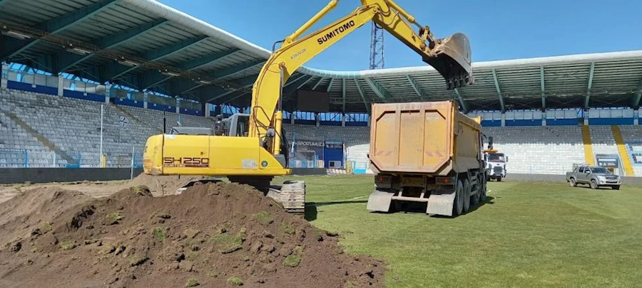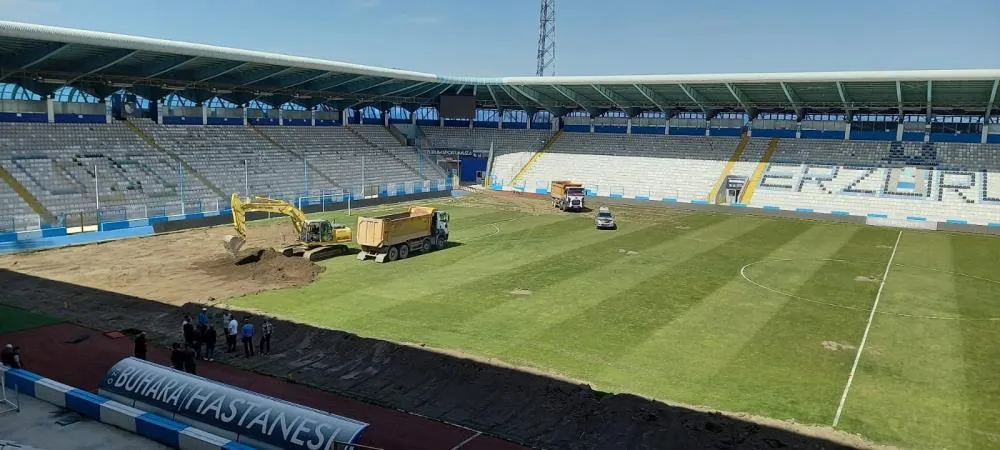 Yeni stadyum yapılıncaya kadar Erzurumspor'un maçlarını oynayacağı Kazım Karabekir Stadının zeminin hibrit çime dönüştürülmesi için kazma vuruldu ve iş makineleri stada girdi.