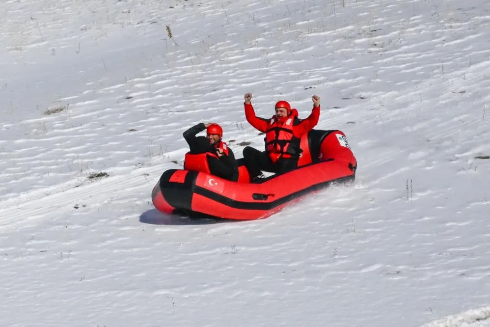 Vali Mustafa Çiftçi macera tutkunlarıyla birlikte Söğütlü Köyü'nde kar üzerinde off-road ve rafting yaptı. Vali Çiftçi, kentin saklı güzelliklerini ortaya çıkarmak ve tanıtmak için yapılan çalışmalara destek vermeye devam ediyor. Macera severler, kente yaklaşık 20 km uzaklıktaki Söğütlü köyünde kar üzerinde off-road ve rafting yaptı. Vali Çiftçi ve Macera Off-Road Doğa Sporları ekibi, normal şartlarda azgın nehir sularında yapılan raftingi bu defa Erzurum'un karlı dağlarında botla kar üzerinde yaptı. Metrelerce yüksekten botla aşağı inen macera tutkunları zaman zaman adrenalin dolu anlar yaşadı.