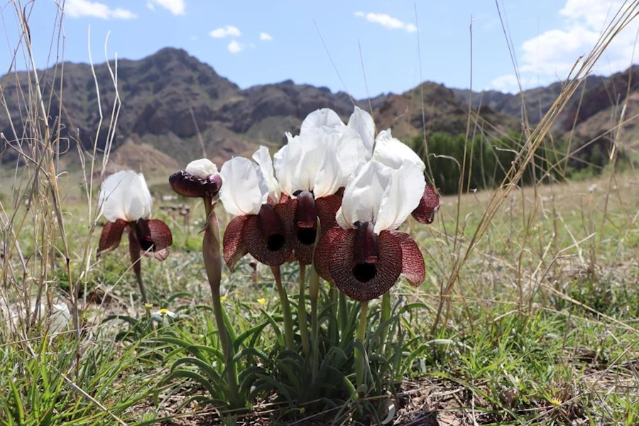 Erzurum'un Oltu ilçesinde, yörenin endemik bitkilerinden olan İris Iberica, halk arasında bilinen adıyla 'kurt kulağı' çiçekleri, meralarda adeta görsel bir şölen oluşturdu.