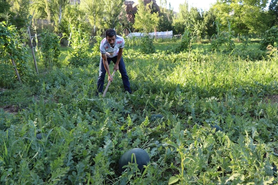 Oltu’nun Yusuf Ziyabey Mahallesi Osmanbey Sokak’ta bulunan Yıldıztekin Çiftliği’nde, yerli üretici Selami Yıldıztekin’in bu yıl ilk kez ektiği Karain karpuzları tarladan sofralara ulaşıyor. 10 yıldır karpuz üretimi yapan Yıldıztekin, bu sezon ürettiği dev karpuzlarla dikkat çekiyor.