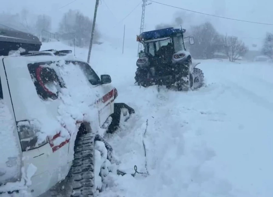 Yoğun kardan mahsur kalan paletli ambulansı sağlık personeli kürekle etrafını açarken Budaklı köyünden gelen traktör çekerek yoğun karlı bölgeden kurtardılar. Hastaneye ulaşan Özdilek Güler’in sağlık durumunun iyi olduğu öğrenildi.
