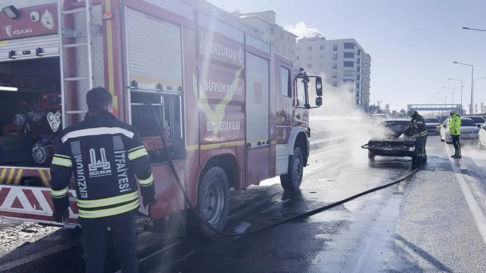 Erzurum - Çat kara yolu Şehir Hastanesi kavşağında meydana gelen olayda, kent merkezine seyir halindeki özel otomobilden bir anda dumanlar yükselmeye başladı. Aracını yol ortasında durdurarak inen sürücü durumu hemen itfaiye ekiplerine bildirdi. Kısa sürede olay yerine gelen Erzurum Büyükşehir Belediyesi ekiplerinin müdahalesiyle yangın söndürüldü.