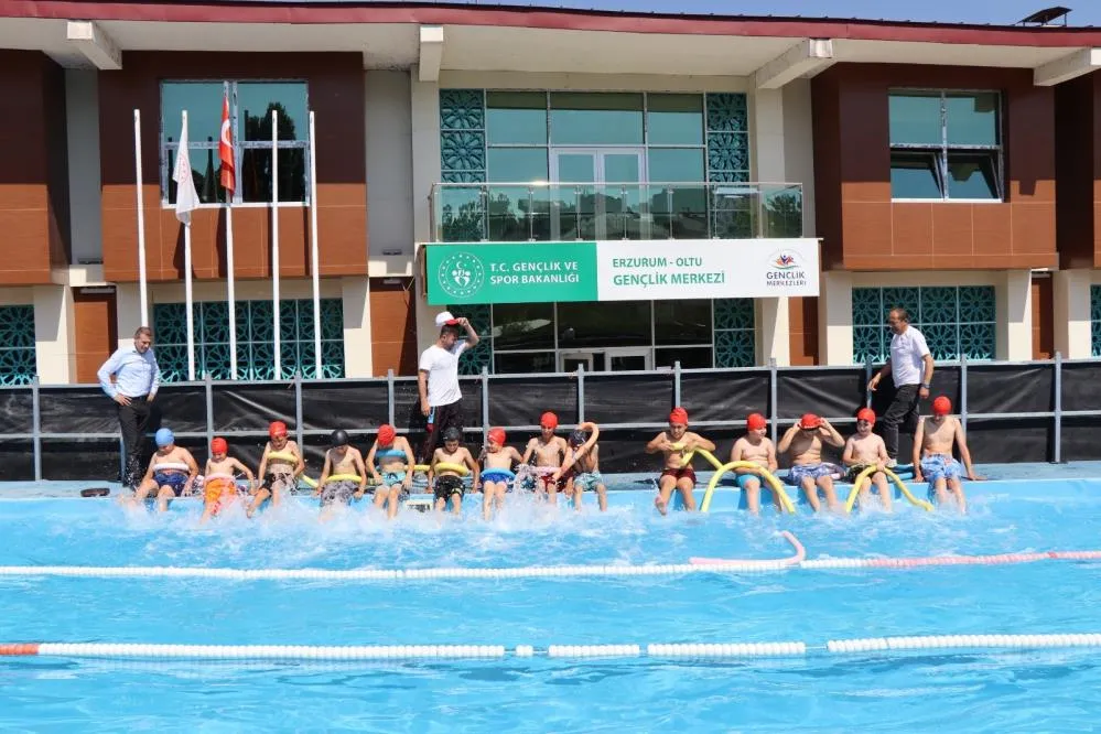 Oltu'da yaz sıcaklarından bunalan çocuklar, serinlemenin ve eğlenmenin en keyifli yolunu yüzme kurslarında buluyor. Erzurum Gençlik ve Spor İl Müdürlüğü tarafından düzenlenen ücretsiz yüzme kursları büyük ilgi görüyor. 7-14 yaş arası kız ve erkek öğrencilere yönelik kurslar, profesyonel antrenörler eşliğinde portatif yarı olimpik havuzda gerçekleştiriliyor. Gençlik ve Spor Bakanlığı'nın Türkiye genelinde uyguladığı "Yüzme Bilmeyen Çocuk Kalmasın" projesi kapsamında açılan kurslara Oltu, Narman, Olur ve Şenkaya ilçelerinden çocuklar katılıyor.