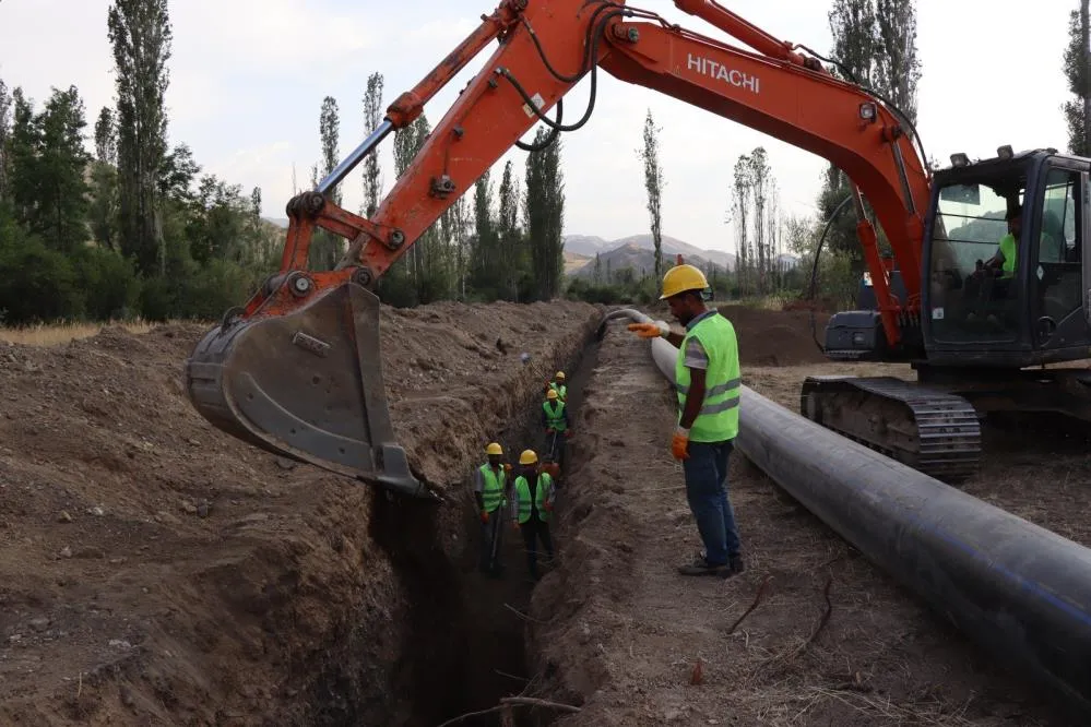 Erzurum'un Oltu ilçesi Sivridere Göleti Sulaması İkmali 2. kısım başlangıcından önce 1. kısım işi kapsamında; ana hat üzerinde 6 bin metre boru döşendi.
