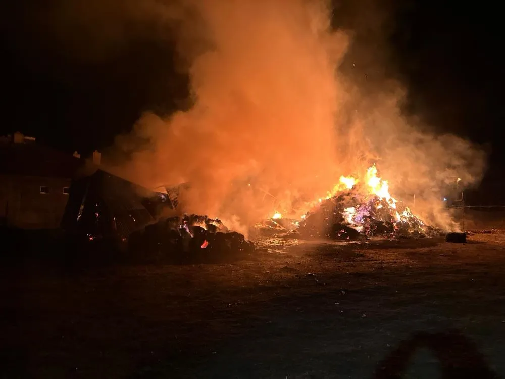 Edinilen bilgiye göre, gece yarısı Tekman ilçesine bağlı Karapınar mahallesinde Cevdet Taşkesen ve Ayhan Taşkesen kardeşlere ait ahır ve samanlıkta çıkan yangın güçlükle kontrol altına alındı. Yangında 1 ahır 1 samanlık bin 300 balya ot kül olurken 5 büyük baş hayvan telef oldu.