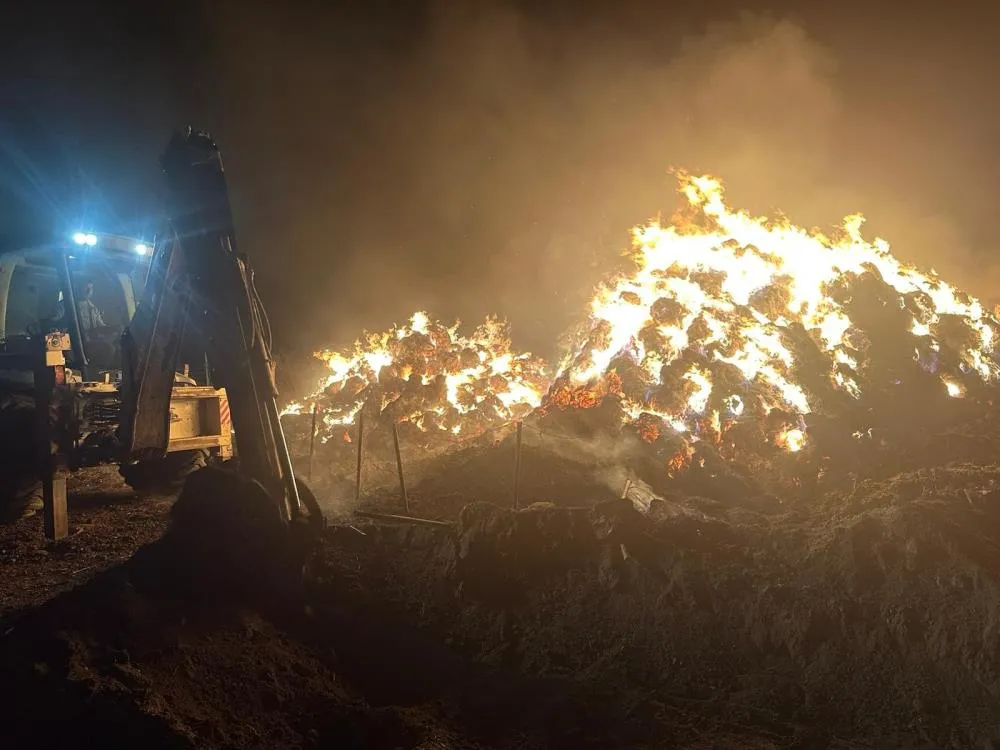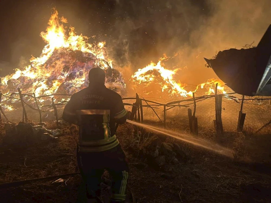 Yangında mahalle muhtarı Aydın Üzer ve kardeşi Ruhsat Üzer’e ait 2 bin 500 balya ot kül olurken yangınla ilgili inceleme başlatıldı.