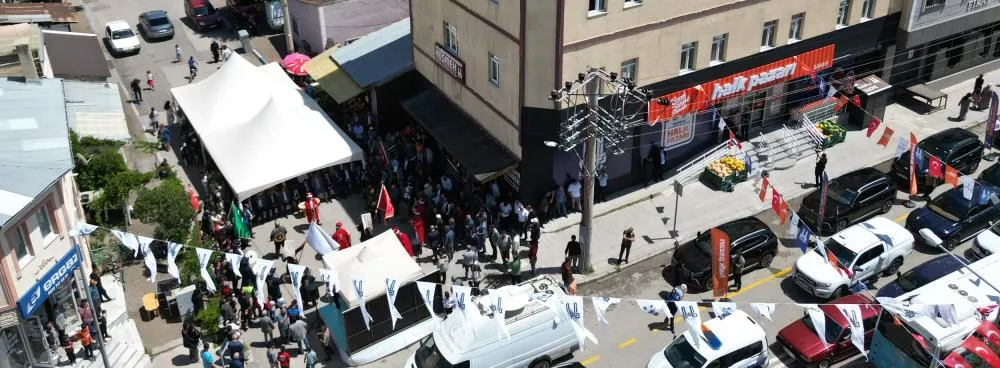 Erzurum Büyükşehir Belediye Başkanı Mehmet Sekmen de, "Bizler Erzurum Büyükşehir Belediyesi olarak, halkımızın ekonomik gücünü koruyacak, vatandaşımızın temel ihtiyaçlarını en uygun koşullarda karşılayabileceği projeleri hayata geçirmeye devam ediyoruz. Bugün burada açılışını gerçekleştirdiğimiz Halk Pazarı, işte tam da bu düsturla, halkımızın faydasına sunulmuş büyük bir hizmettir. Biz Erzurum’u büyütürken sadece altyapıyla, sadece imarla değil; insanı önceleyen, ihtiyaçlara doğrudan cevap veren, vatandaşımızın hayatını kolaylaştıran sosyal projelere de öncelik veriyoruz. Halk pazarları da işte bu vizyonun bir parçasıdır" kaydını düştü. "Mahalle mahalle kurduğumuz halk pazarlarıyla hem üreticimizi destekliyor hem de kıymetli kardeşlerimizin sofrasına daha kolay, daha ucuz, daha kaliteli ürünler ulaştırıyoruz" diyen Başkan Sekmen, şöyle devam etti: "Her zaman söylüyoruz: Biz bu şehri beraber inşa ediyoruz. Her tuğlasında hemşehrilerimizin sesi, her adımında aziz milletimizin duası var. Bizim belediyeciliğimizde sadece yol yapmak yok, sadece bina dikmek yok. Biz gönül kazanmak, rızayı Allah’tan, duayı milletten almak derdindeyiz. O yüzden attığımız her adımda milletimizin hayrını gözetiyoruz. Bugün burada açtığımız Halk Pazarı Sanayi Şubesi, bu anlayışın, bu gönül belediyeciliğinin bir tezahürüdür. Erzurum büyüyor, Erzurum gelişiyor. Hamdolsun altyapıda, üstyapıda, ulaşımdan yeşil alana, sosyal belediyecilikten kültürel projelere kadar her alanda ülkemize örnek işler yapıyoruz. Göreve geldiğimiz günden bu yana, Erzurum’da birçok projeyi hayata geçirdik. Sosyal yardımlardan altyapı projelerine, kentsel dönüşüm çalışmalarından tarım ve hayvancılığın desteklenmesine kadar her alanda önemli yatırımlar yaptık. Çok şükür, Erzurum’umuzu her geçen gün daha yaşanabilir, daha modern ve daha güçlü bir şehir haline getiriyoruz. Biz bu hizmetleri yaparken güç ve ilham kaynağımız, sizlerin duası ve desteğidir. Her zaman yanımızda olan, sabırla, anlayışla bizlere güvenen tüm hemşehrilerime bir kez daha teşekkür ediyorum. Açılışını gerçekleştirdiğimiz bu halk pazarı şubemizin esnafımıza, vatandaşlarımıza ve şehrimize hayırlı, bereketli olmasını diliyorum."