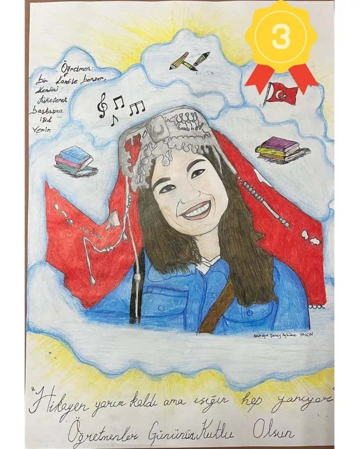 "Lise Öğrencileri Arası Resim Yarışması" ve "Öğretmenler Arası Anı Yarışması" sonuçlandı. Ortaya çıkan eserler; öğretmenliğin manevi derinliğini, eğitimin iz bırakan yolculuğunu ve insan ruhuna dokunan zarafetini bir kez daha görünür kıldı. Ödüller, 24 Kasım Öğretmenler Günü Kutlama Programı’nda sahiplerine takdim edilecek. Bu yıl öğrenciler; minnetlerini, hayranlıklarını ve öğretmenlik mesleğine duydukları saygıyı renklerle anlattı. Her eser; bir öğretmenin yüreğine, bir öğrencinin yolculuğuna dair saklı hikâyeleri tuvale taşıdı. Dereceye Giren Öğrenciler: 1.’lik: Duha Sarıyar - Oltu Fen Lisesi 2.’lik: Fatmanur Dağ -Nurettin Topçu Sosyal Bilimler Lisesi 3.’lük: Azra Yeşildere - Emel Çatal Anadolu Lisesi