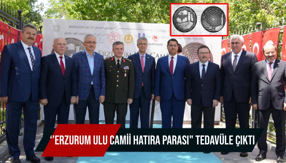 "Erzurum Ulu Camii Hatıra Parası"nın tedavüle çıkarılmasıyla ilgili bir tören yapıldı. Törene Darphane ve Damga Matbaası Genel Müdürü Abdullah Yasir Şahin, Erzurum Vali Vekili Ahmet Özdemir, 9'uncu Kolordu ve Garnizon Komutanı Tümgeneral Tuncay Altuğ, Büyükşehir Belediye Başkanı Mehmet Sekmen, AK Parti Erzurum Milletvekilleri Selami Altınok ve Mehmet Emin Öz, MHP Erzurum Milletvekili Prof. Dr. Kamil Aydın, ETÜ Rektörü Prof. Dr. Bülent Çakmak ve İl Emniyet Müdürü Kadir Yırtar ve MHP İl Başkanı Adem Yurdagül katıldı.