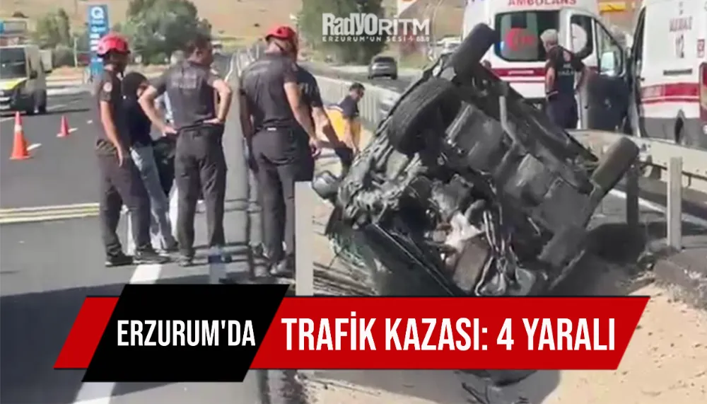 Erzurum'da sürücüsünün direksiyon hakimiyetini kaybettiği hafif ticari araç, yoldan çıkarak refüje devrildi. Kazada ters dönen araçtaki 4 kişi yaralandı.