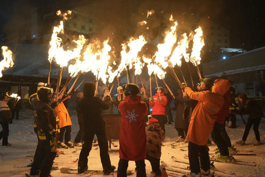 Yeni yıla meşaleli kayak gösterisiyle girdiler