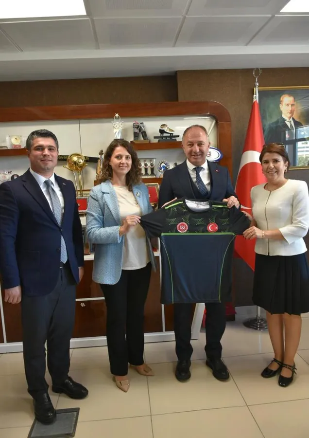 Kulüp Başkanı Buket Aydın, ziyaret anısına İl Müdürü Levent Çakmur’a Speed Skating Spor Kulübünün formasını hediye ederek takımın maçlarına davet etti.